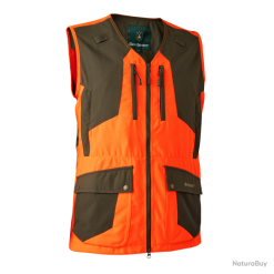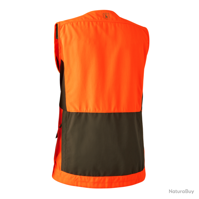 Le gilet de chasse Deerhunter strike Extreme arbore un coloris vert et orange vif mélangé pour rester bien visible des autres chasseurs ou au moment du crépuscule.