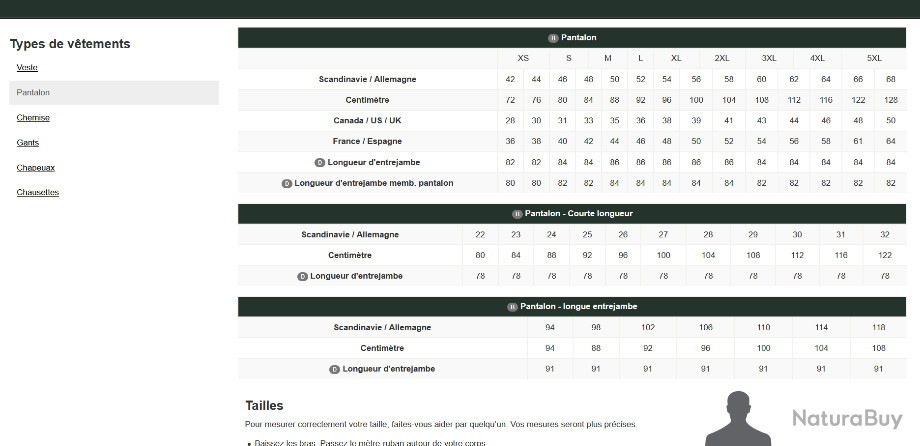 Tailles françaises